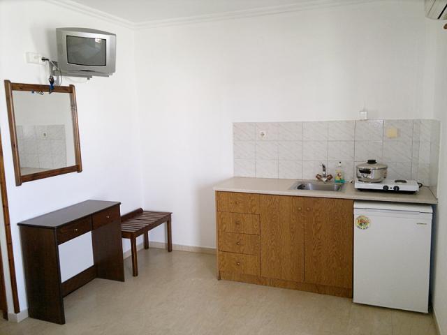 Az apartmanok mindegyike konyhasarokkal, TV-vel, légkondicionálóval (a helyszínen igényelhető 5 EURO/stúdió/nap áron), zuhanyzó/WC-vel felszerelt és terasszal vagy balkonnal rendelkezik. Családi apartmanok foglalhatók, melyben két felnőtt mellett 1, 2, 3 vagy 4 gyermek szállását (16 éves korig) ingyenesen biztosítjuk.