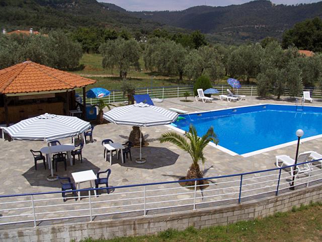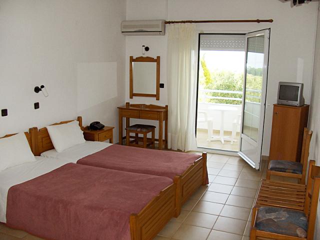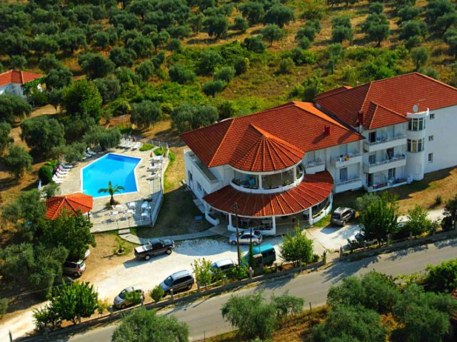 Skala Potamias központjától kb. 1,5 km-re, a tengerparttól kb. 800 méterre épült szálloda. Éttermek, tavernák, kávézók, bárok, üzletek a település központjában találhatók
