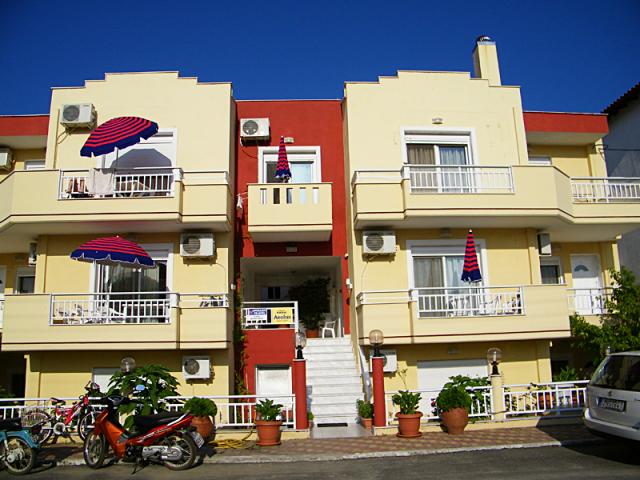 Sarti központjától kb. 600 m-re, a homokos tengerparttól kb. 100 m-re található. Az apartmanház 2004-ben épült, szépen, igényesen berendezett Csendes helyen, a tengerparthoz közel épült apartmanház.