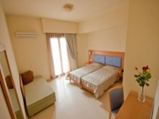 Fekvése: a legközelebbi homokos/kavicsos strandtól csak a parti út választja el (a szélesebb, homokos part rövid sétával elérhető), a városka központjától 300 m-re található, ahol számos étterem, taverna, bár várja a nyaralókat