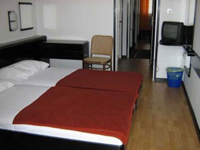 fürdőszoba, telefon, egyszerű berendezés, csak a tengerre néző szobában van TV, erkély és csak az pótágyazható (fotelágy). Alap szoba franciaágyas (140x200 cm).