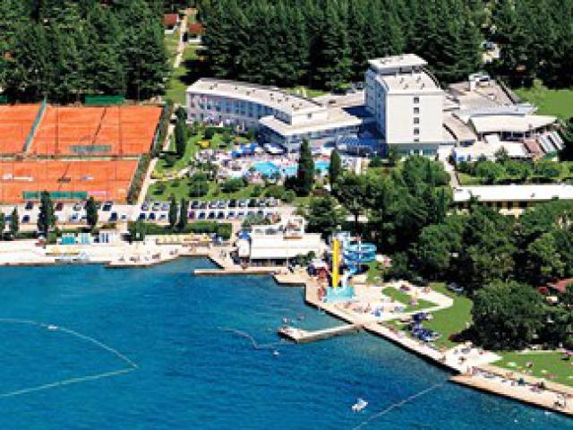 Porec óvárosától 2 km-re, a napozórészekkel kiépített és sziklás strandtól 100 m-re a hotel Laguna Park mögött kis bungalókban találhatóak a szobák.