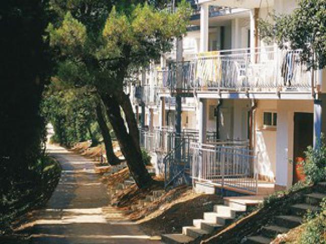 Pula-tól 4 km-re, Verudela felé 50-300 m-re légvonalban a kavicsos és sziklás tengerparttól, kétszintes lépcsőzetes elrendezésű sorházakban, zöld környezetben találhatóak az apartmanok.